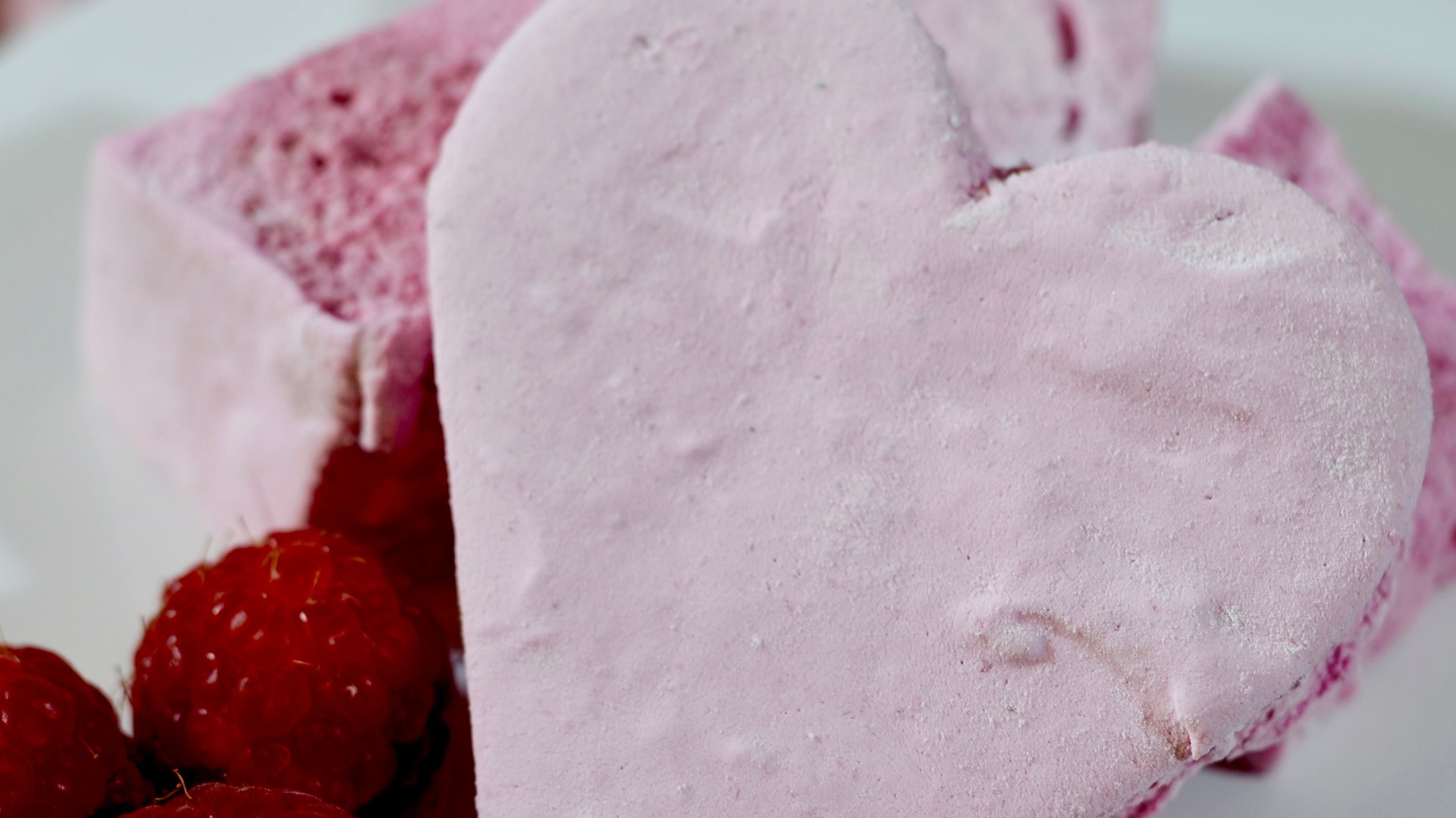 Den Zucker mit 60g Glukosesirup und 60g Fruchtpüree in einen Topf geben und zu einem Sirup aufkochen (113°C) und in die Küchenmaschine geben. Das restliche Fruchtpüree und Glukose dazugeben und gut verrühren.