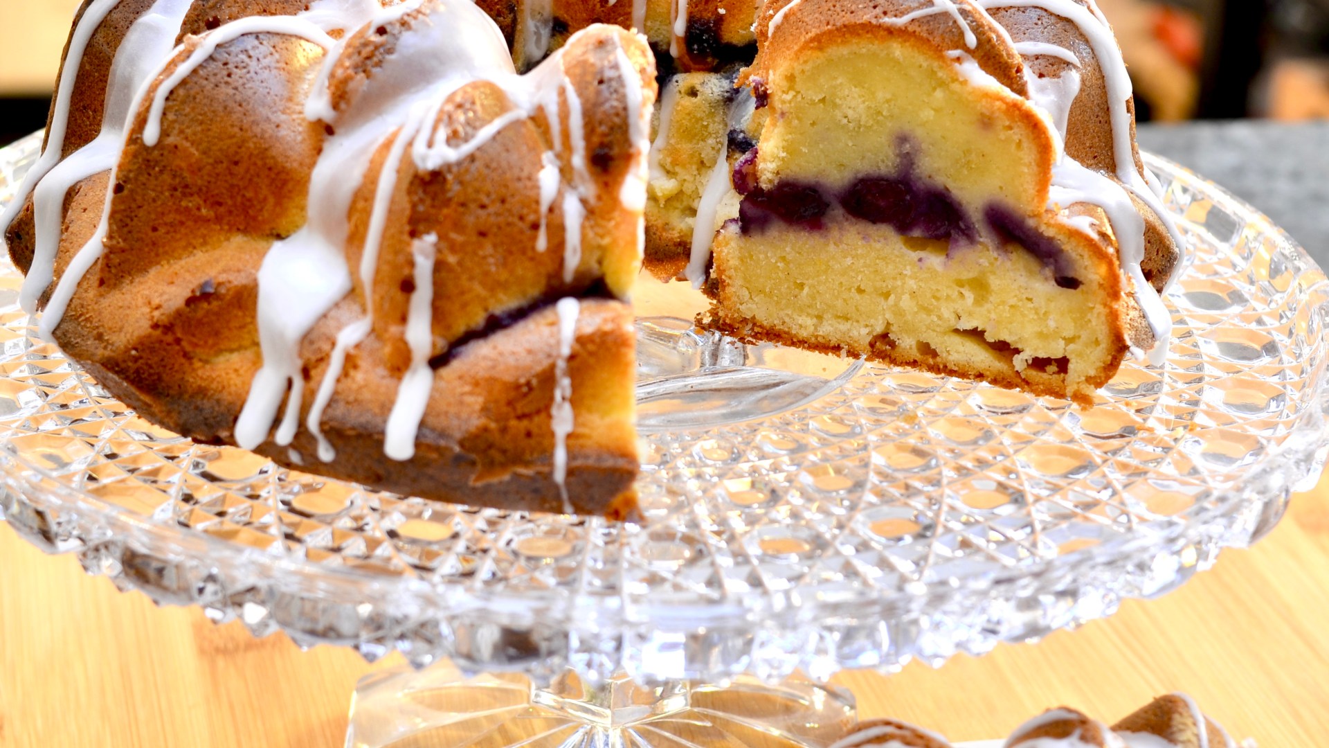 Nach dem Abkühlen den Kuchen stürzen und mit dem Guss verzieren.