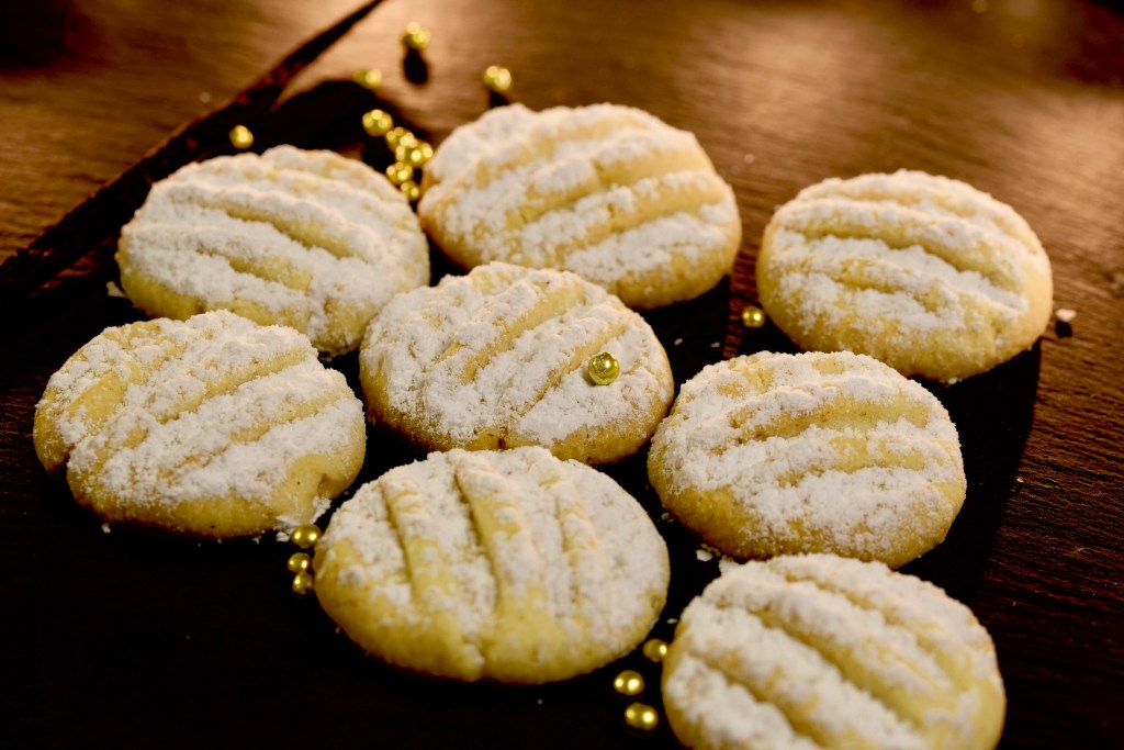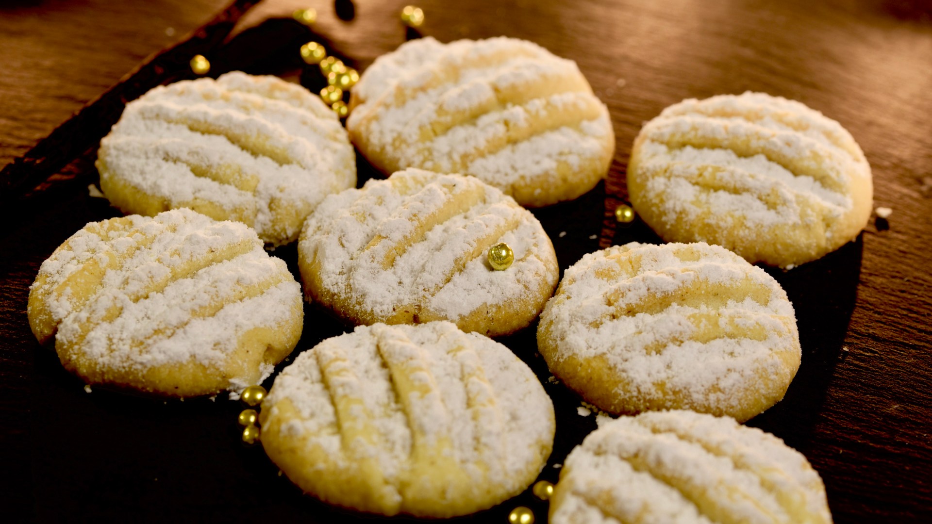 Die Butter schaumig rühren. 50g Puderzucker sieben, mit dem Mehl, Speisestärke, Vanillezucker und Anis mischen. Unter die Butter rühren und für 60 min kaltstellen.