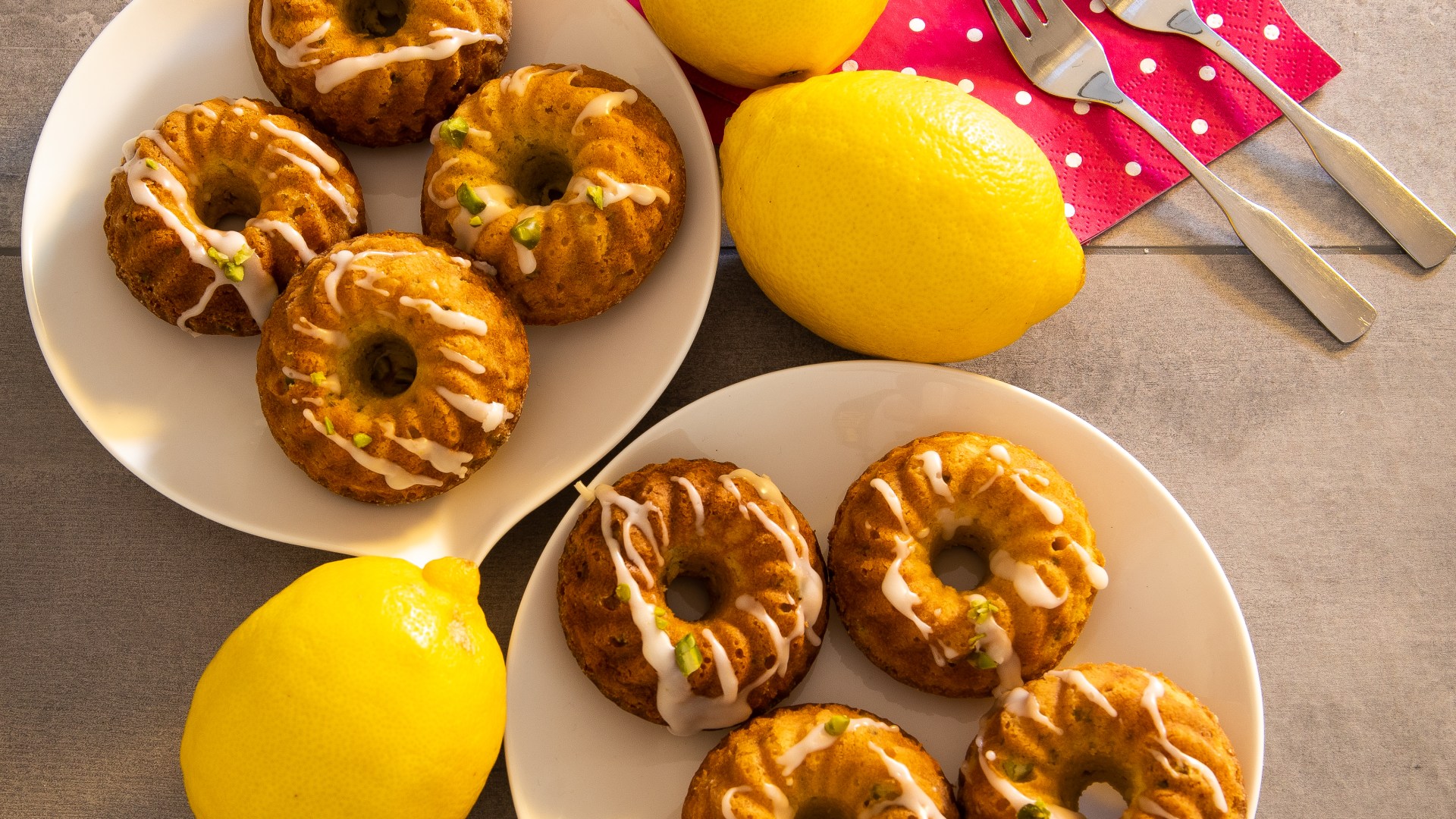 Ihr könnte die Gugels mit Puderzucker bestreuen oder wie ich mit einem Zitronenzuckerguss dekorieren und mit ein paar Pistazien Stücken garnieren.